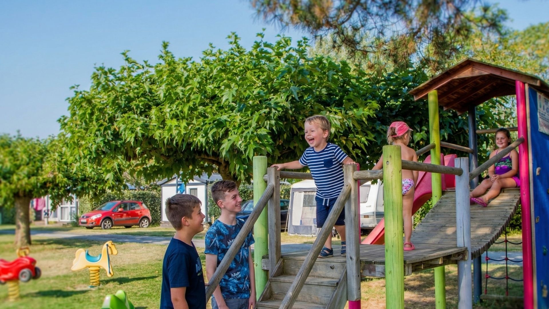 For the pleasure of the youngest, from 3 to 10 years old, our campsite has an outdoor playground dedicated to them. They will be able to enjoy the slide, the horse and carriage on springs, the climbing wall, the climbing net, the tree house.